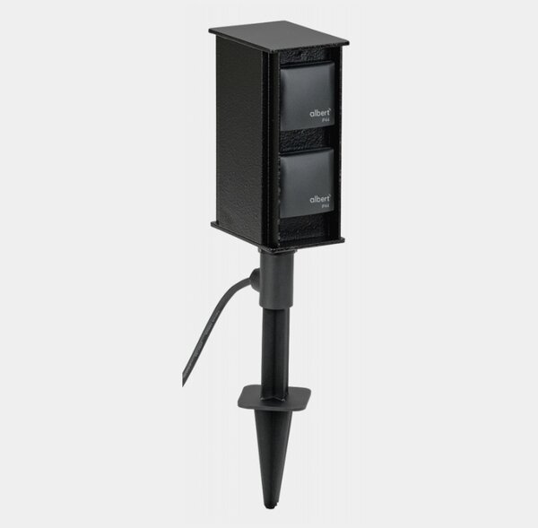 Albert-Steckdosenspieß 662104 mit 4 Schutzkontaktsteckdosen 16 A / 250 Volt sowie Erdspieß und 2.500 mm Anschluss Leitung inkl. Stecker. Aus korrosionsbeständigem Aluminiumguß, Farbe: schwarz