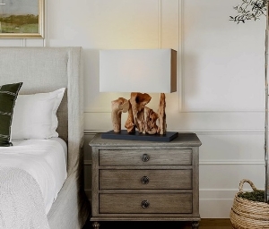 (including ) - Color: Bleached Holz (Sockel) und grobes Leinen (Lampenschirm) in Natur