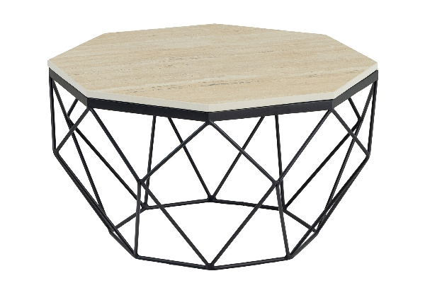 - Color: Gestell Eisen schwarz Platte Travertin