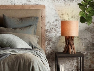 (including ) - Color: Naturbelassenes Holz (Sockel) und grobes Leinen (Lampenschirm) in Natur und Braun