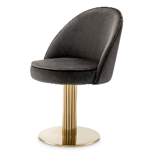 Entdecken Sie den Inbegriff von Luxus mit dem Eichholtz Dorland Dining Chair. Mit seiner raffinierten Oberfläche aus gebürstetem Messing und der dunkelgrauen Samtpolsterung von Roche verbindet dieses kultige Stück nahtlos Metall und Stoff. Der drehbare Fuß sorgt für mühelose Bewegung, während das elegante Design einen Hauch von zeitlosem Charme verleiht. Werten Sie Ihr Interieur mit dem Dorland Dining Chair auf, wo Stil auf unvergleichlichen Komfort trifft.