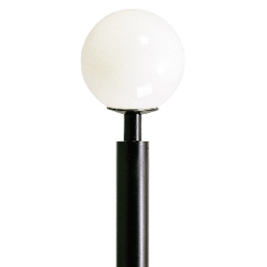 Albert sphere pole top light 660854 made of corrosion resistant cast aluminum with white plastic sphere. Set up for 1 bulb A60 150W, socket E 27.for pole spigot diameter 60 mm, insertion depth 130 : black Protection IP 44 - Protection class : 450 mm
