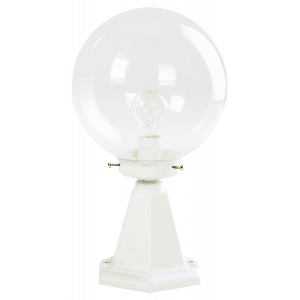 Albert-Sockelleuchte 680501 aus korrosionsbeständigem Aluminiumguß mit klarer Blasenglaskugel d 250 für 1 x A60 75W, Fassung E 27. Anschlussfertig zum Aufschrauben auf ein Fundament oder auf den Erdeinbausockel Typ Nr. 690010. Farbe: weiß Schutzart IP 44 - Schutzklasse : d 185 x d 250 x 435 mm