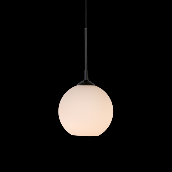 Capo collection, a classic café pendant light with a graceful opal glass shade and details in black. A pendant luminaire that spreads a cozy light, perfect for the hallway, dining room or kitchen. The Capo pendant light is available in various sizes and looks just as good on its own as it does together with others.