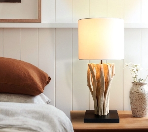 (including ) - Color: Holz (Sockel) und Baumwolle (Lampenschirm) in Bleached und Weiß