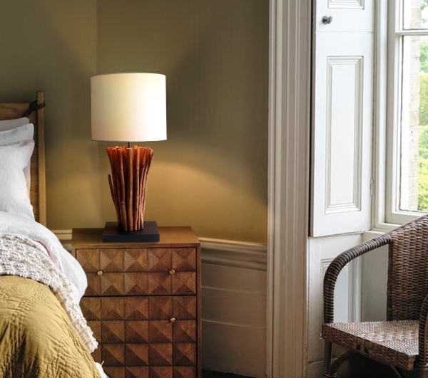 (including ) - Color: Wax-Holz (Sockel) und Baumwolle (Lampenschirm) in Natur und Weiß